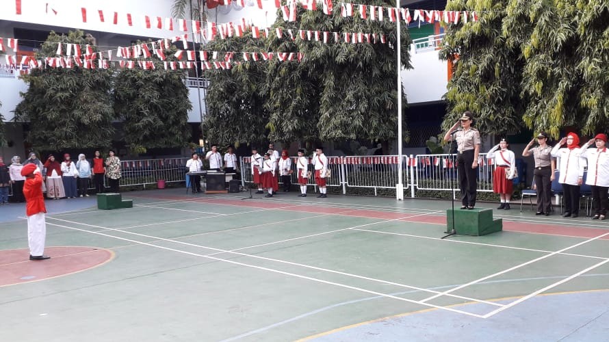 Jakarta, Lintas10.Com – Dalam menyambut hari kemerdekaan RI ke-73 tahun 2018, Kasat Binmas Polres Metro Jakarta Barat, AKBP Lilik Hariati SH MH bersama anggotanya melaksanakan upacara pengibaran bendera Merah Putih di halaman Sekolah Dasar (SD) Bhakti ( YKKP ) yang berlokasi di Jalan Komplek Pajak Kemanggisan, Kelurahan Kemanggisan, Kecamatan Palmerah, Jakarta Barat, Jumat (17/8/2018).