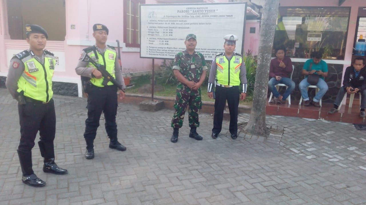 Koramil dan Polsek Sananwetan amnkan saat umat kristiani menjalankan ibadah