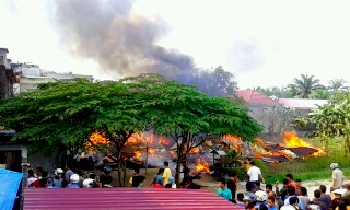 “saya baru hendak pergi kerja tiba-tiba mendengarkan suara yang minta tolong, setelah saat melihat dari kejauhan ada asap putih membubung tinggi di atas langit dan api membesar. Orang –orang berhampuran ramai –ramai melihat kejadian kebakaran itu,” ujar  lastin pada lintas10.com.