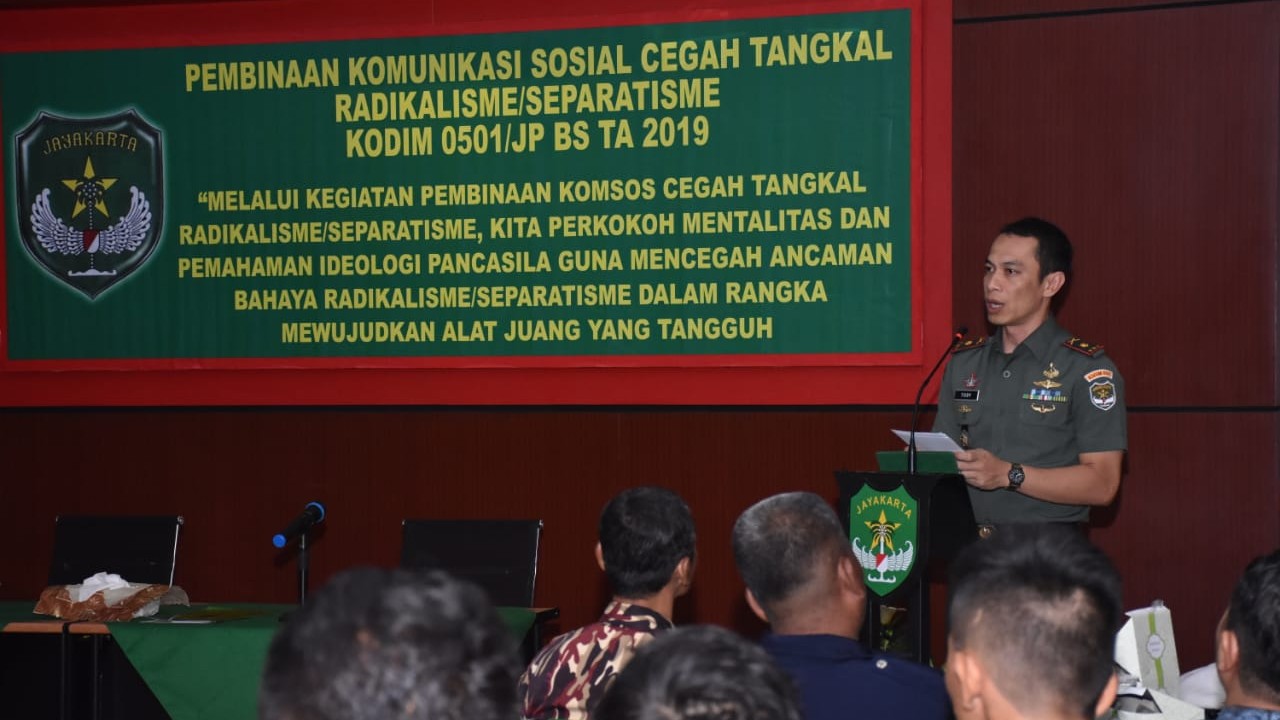 Jakarta Pusat, LINTAS10.COM – Kodim 0501/ Jakarta Pusat BS menyelenggarakan pembinaan komunikasi sosial ( Komsos) Cegah Tangkal Radikalisme/ Sparatisme dipimpin oleh Plt Kasdim 0501/ JP BS, Mayor Inf Tody Imansyah yang digelar di Aula Makodim Jalan Selaparang Kav 1 Blok B 11, Gunung Sahari Selatan, Kemayoran, Jakarta Pusat, Jumat (9/8/2019).