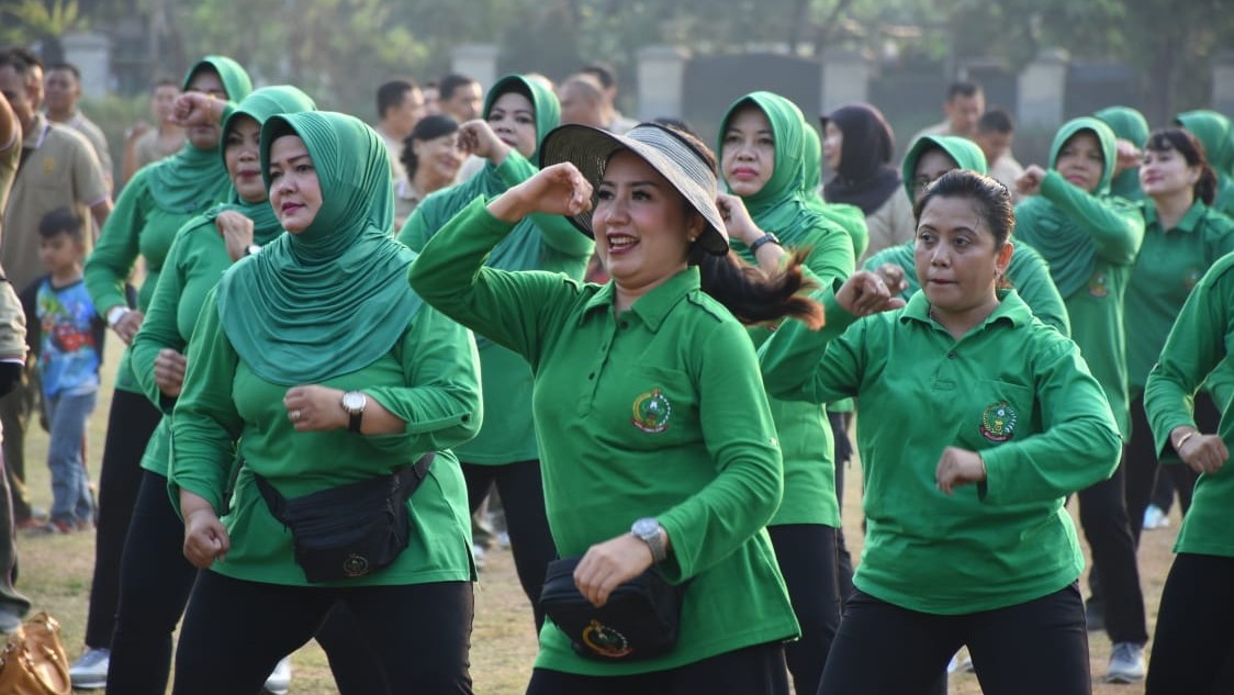 Dandim 0501/JP BS, Letkol Inf Wahyu Yudhayana dan Ketua Persit Kartika Chandra Kirana Cabang XV Jakarta Pusat BS ikut serta sebagai peserta perlombaan.