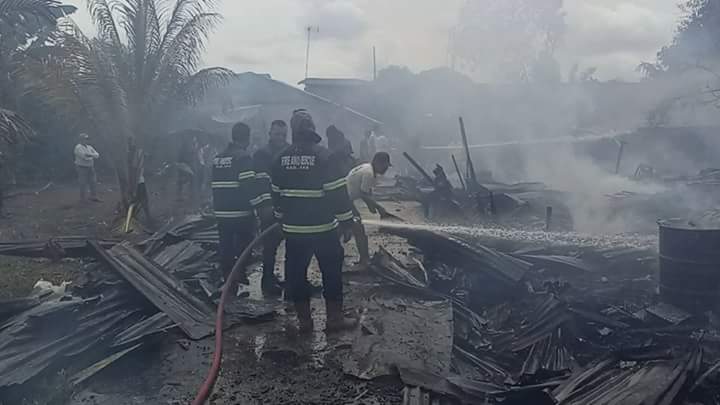 “lYa bang tadi sekitar tengah hari ada kejadian kebakaran ‎5 pintu terbakar,” ungkap Kepala kampung saat di hubungi wartawan melalui telephon seluler, Minggu(21/1/2018).