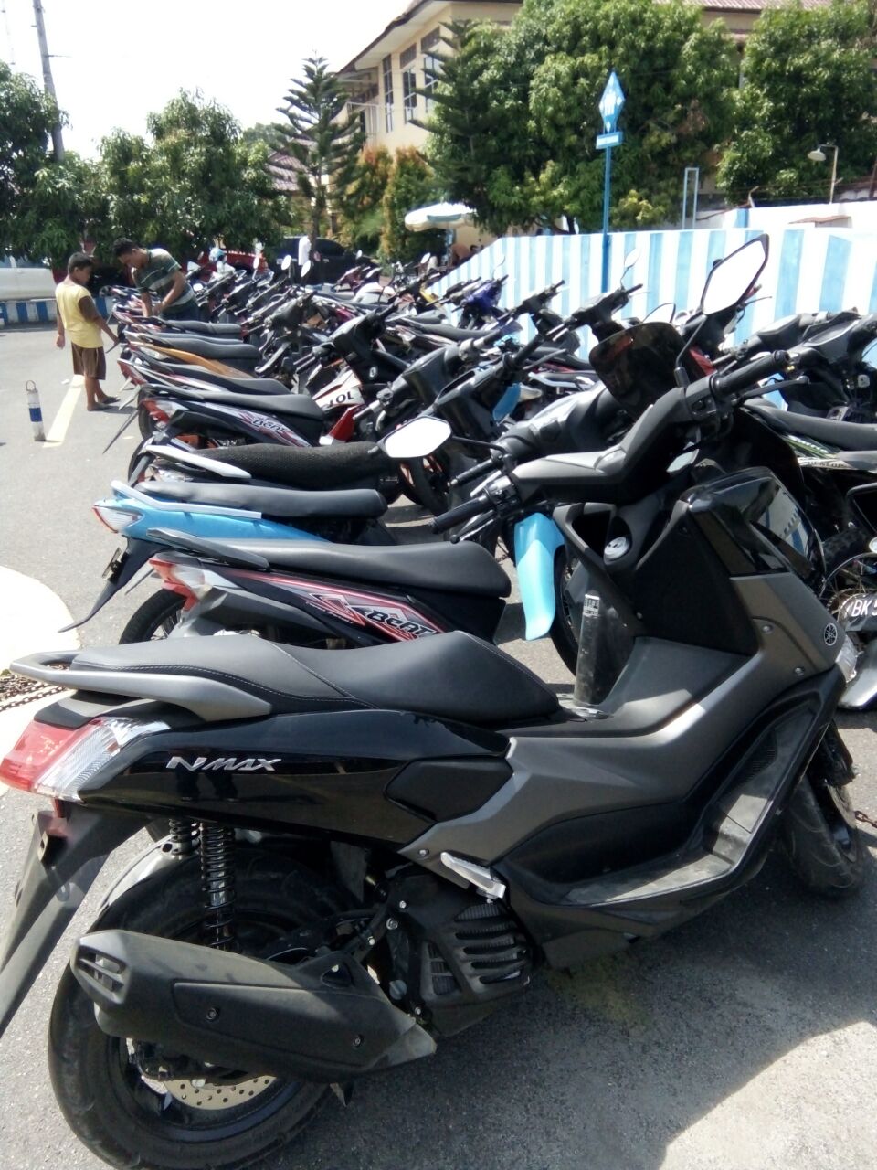Hasil Pantauan lintas10.com,Selasa dan Rabu (18-19/7/2017) sekitar 50’an unit Sepeda Motor ditahan dan nginap di ikat rantai di halaman Polres Labuhanbatu.