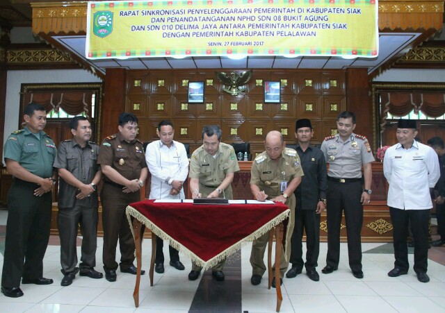 Hal tersebut terwujud pada penandatanganan Naskah, yakni Perjanjian Hibah Daerah / Serah Terima Barang Hibah SDN 08 Bukit Agung dan SDN 010 Delima Jaya antara Pemkab. Siak dengan Pemkab. Pelalawan. Siang ini, Senin (27/2/2017) di Ruang Rapat Sri Indrapura Kantor Bupati Siak.