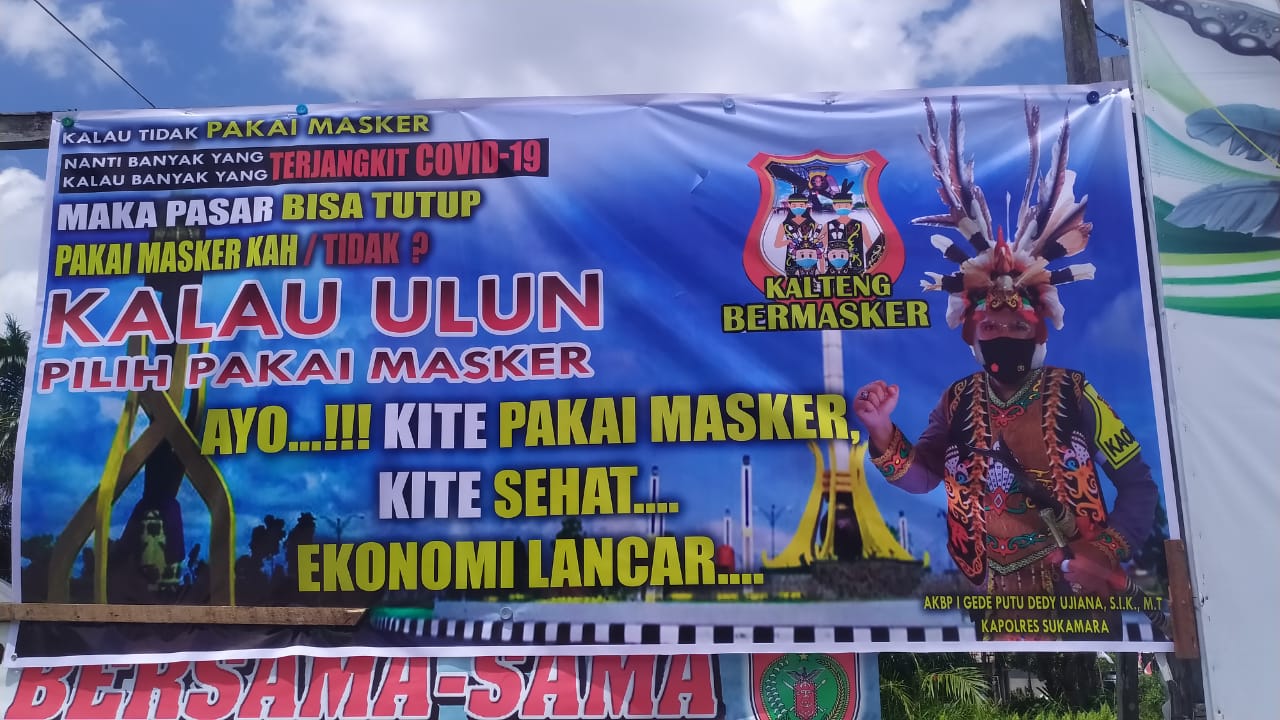 Ajakan Pakai Masker, Polres Sukamara Pasang Spanduk Di Pasar Sayur