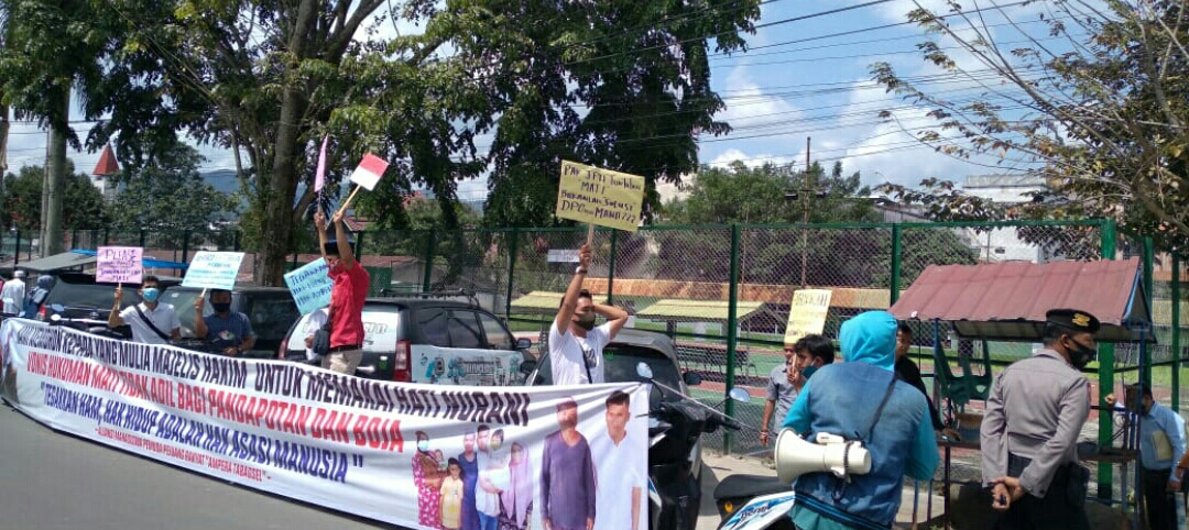 Padangsidimpuan, lintas10.com-Puluhan massa pemuda dan masyarakat yang tergabung di Aliansi Mahasiswa Pejuang Rakyat, gelar aksi simpatisan terhadap dua terdakwa yang di kabarkan akan menerima vonis hukuman mati. Aksi tesebut berlangsung di depan Pengadilan Negeri Padangsidimpuan jl. Sermalian kosong (7/9/2020) pada pukul 11.00 WIB.