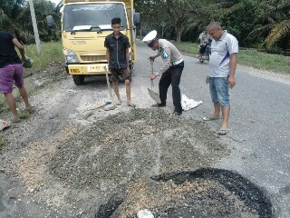 Jalan yang rusak atau berlubang ini dapat memicu kecelakaan lalu lintas, ditambah lagi daerah Tapung ini merupakan salah satu daerah rawan kecelakaan di wilayah hukum Polres Kampar. Dengan dibantu 3 orang masyarakat penimbunan jalan berlubang di daerah Petapahan-Kota Haro Km 36,53,54 Pantai cermin ini dapat terselesaikan.