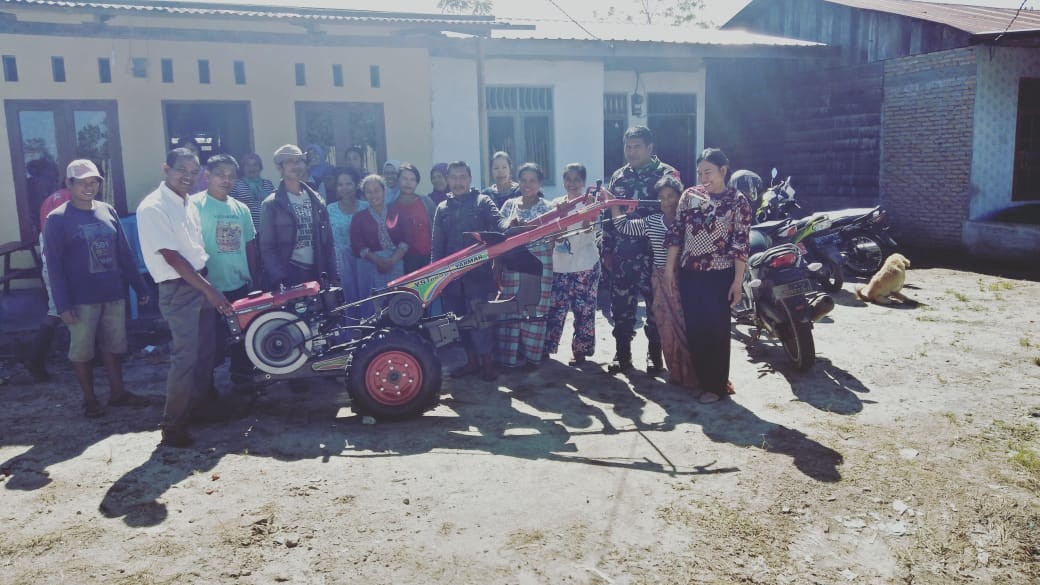 Sidikalang, Lintas10.com – Babinsa Koramil 02/Sidikalang, Kodim 0206/Dairi, Serda Ibrahim Barus bersama petugas PPL menyerahan Brigade Alsintan berupa Hand Tracktor untuk pinjam pakai kepada Kelompok Tani (Poktan) Mandena di Kelurahan Sidiangkat, Kecamatan Sidikalang, Kabupaten Dairi, Jumat (21/12/2018).