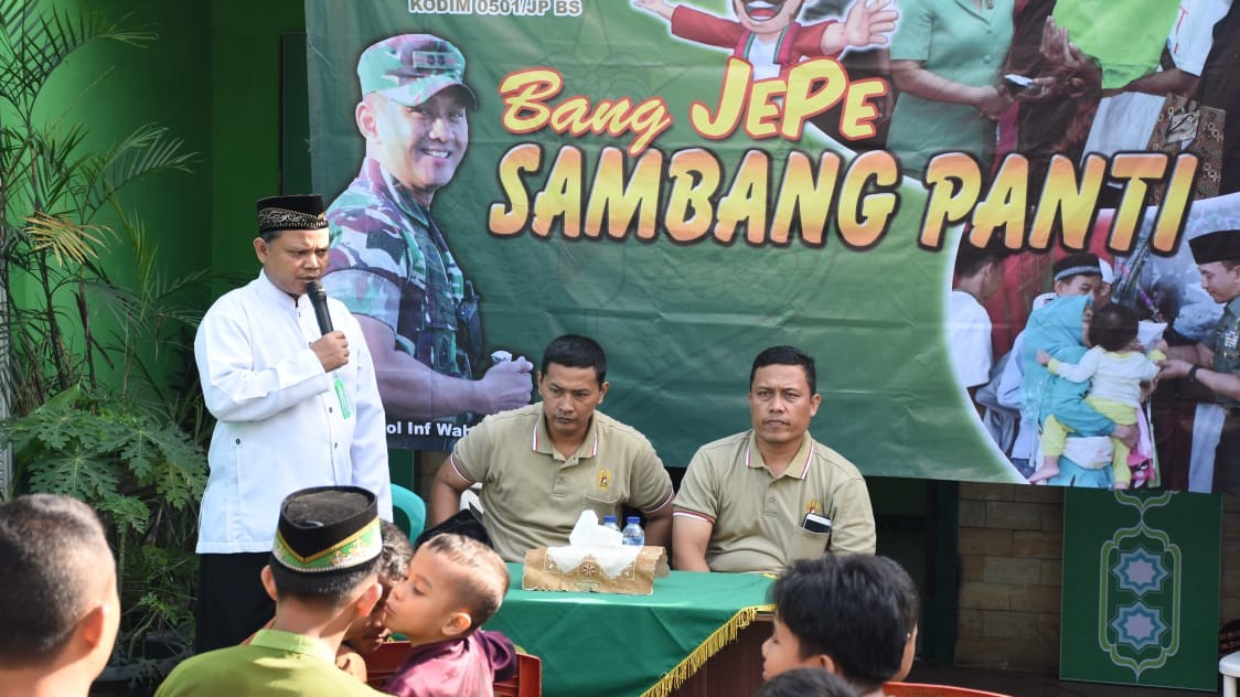 Dalam sambutannya, Danramil menyampaikan Bang JE PE Sambang Panti merupakan satu kegiatan sosial yang diselenggarakan oleh Kodim 0501/JP BS untuk berbagi dengan warga binaan terutama anak yatim dan dhuafa.