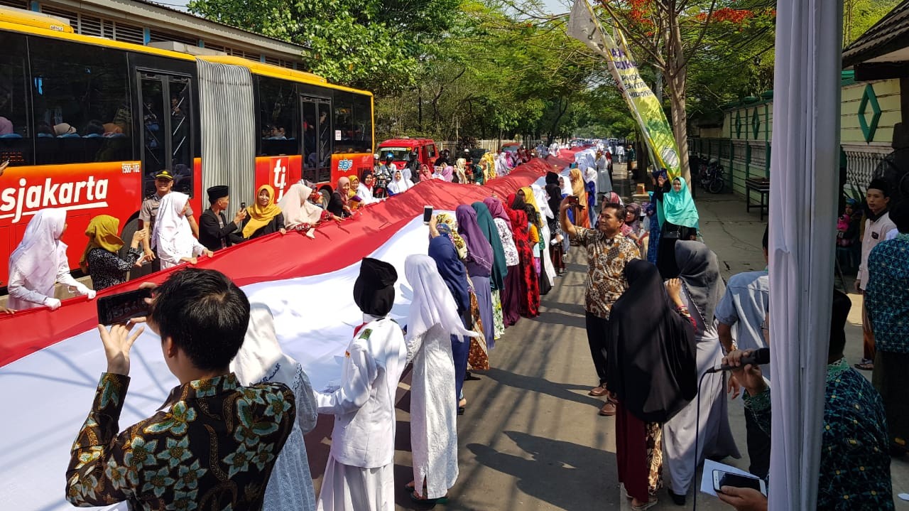 “Salah satu contoh saat ini, bendera Merah Putih sepanjang 700 meter yang dibentangkan ini melambangkan semangat Santri Assidhiqqiyah,” katanya.
