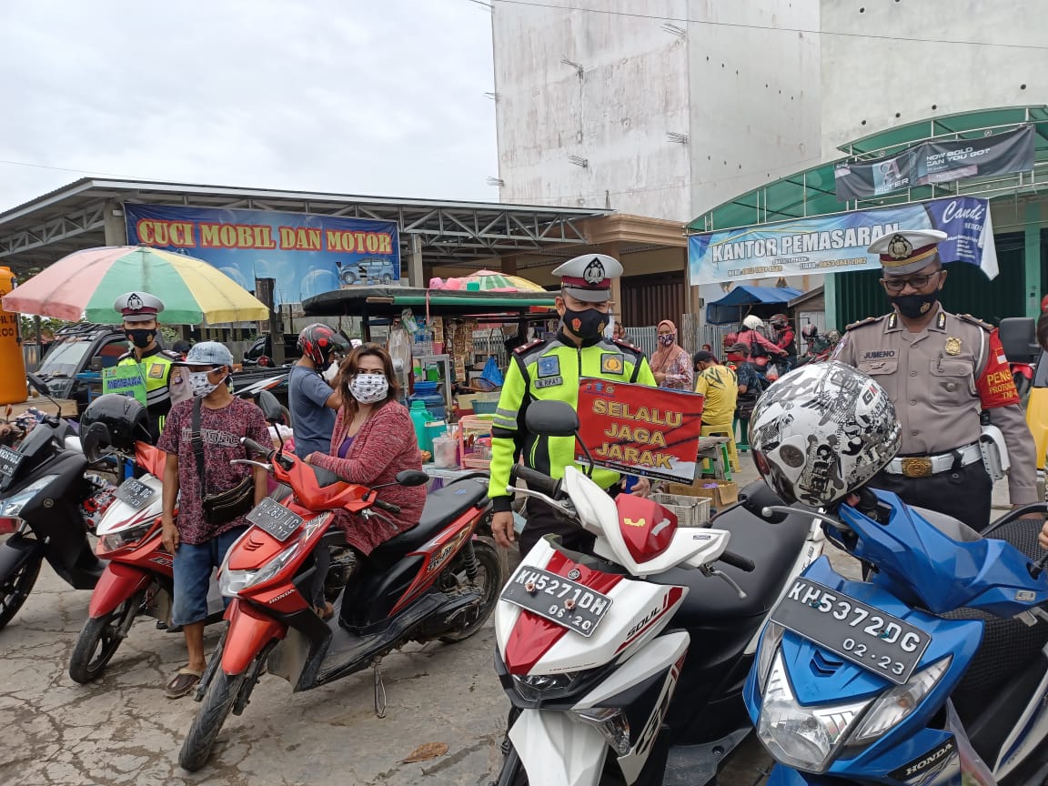 Seperti yang dilaksanakan personel Satlantas saat menyambangi pasar shubuh Buntok, Prov. Kalteng, Kamis (3/9/2020) pagi, untuk memberi edukasi dengan mengajak masyarakat mematuhi protokol kesehatan.