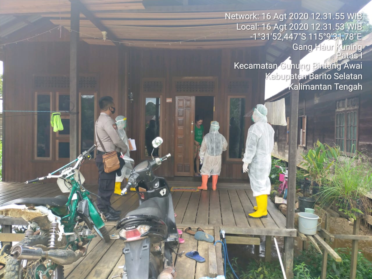 Kalimantan Tengah, lintas10.com- Guna memberikan rasa aman, personel Polsek Gunung Bintang Awai, Polres Barsel, Polda Kalteng, melaksanakan pengawalan kepada petugas Puskesmas Desa Patas yang melaksanakan Tracking Contact (Rekam Kontak) pasien Covid-19. Minggu (16/8/2020) siang.