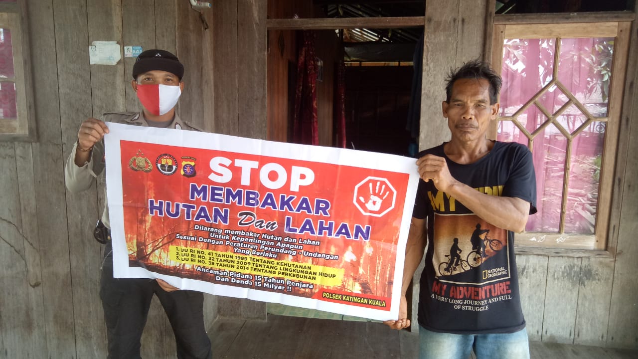 Melalui bhabinkamtibmas Desa Kampung Kramat Bripka Hodie mensosialisasikan larangan karhutla sekaligus mengajak warga binaannya untuk tidak membuka lahan pertanian atau perkebunan dengan cara dibakar.