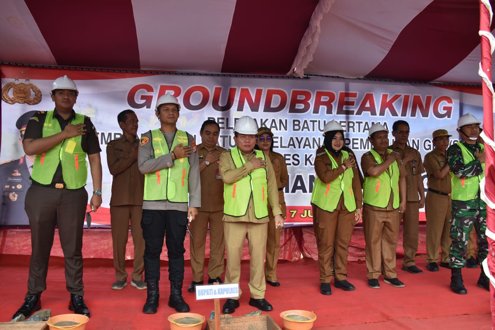 KUALA KAPUAS – Bupati Kapuas H M Wiyatno menghadiri sekaligus melakukan peletakan batu pertama pembagunan Satuan Pelayanan Pemenuhan Gizi (SPPG) Polres Kapuas, di Jln. Suka Damai RT. 002, Desa Tambun Raya, Kecamatan Basarang , Senin (7/7/2025).