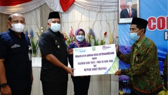 “Alhamdulillah, 1756 guru di Siak akan menerim kartu BPJS ketenagakerjaan, ini merupakan jaminan perlindungan sosial bagi para guru MDTA di Siak. Ini luar biasa, dan ini termasuk sedekah jariah. Semoga rumah sakit Syafira lebih baik, lebih maju dan berkembang di masa mendatang,”kata dia.