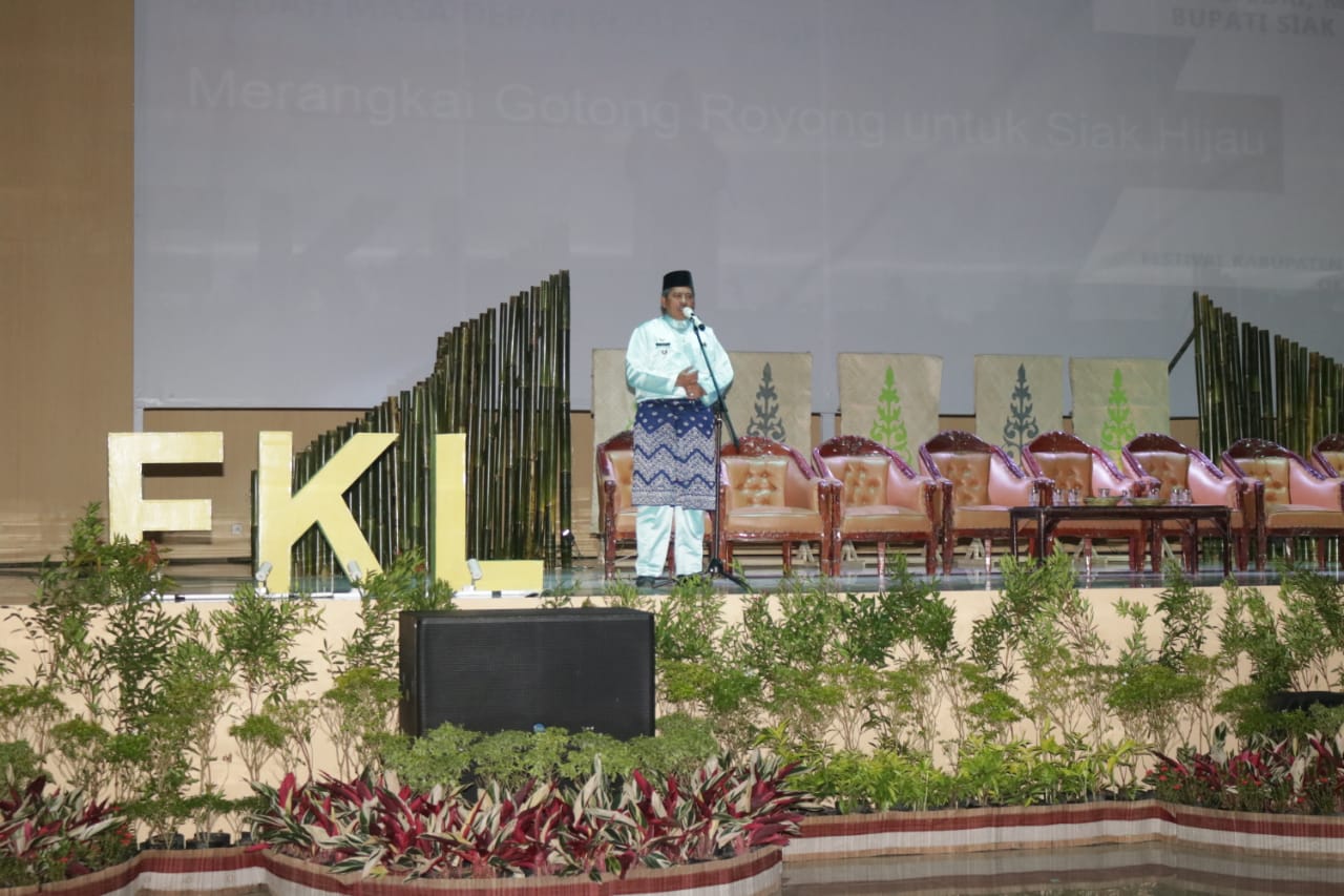SIAK,lintas10.com-Bupati Siak Alfedri saat menghadiri lokakarya bisnis lestari dalam konteks acara Siak hijau rangkaian festival kabupaten lestari tahun 2019. Acara ini berlangsung di Gedung Daerah Siak (Sultan Syarif Kasim) kamis, (10/10/2019).
