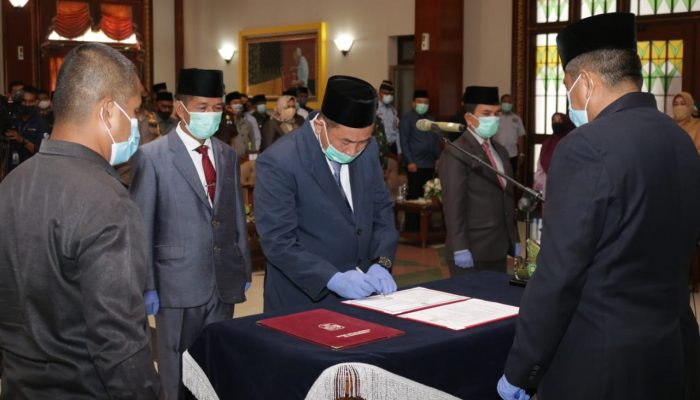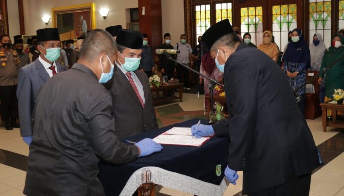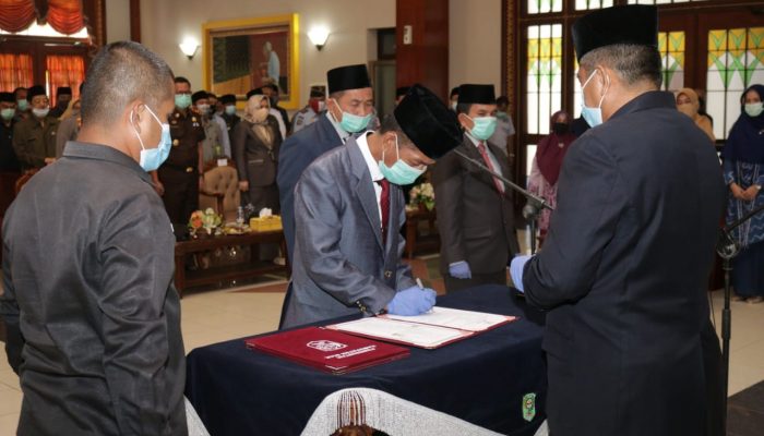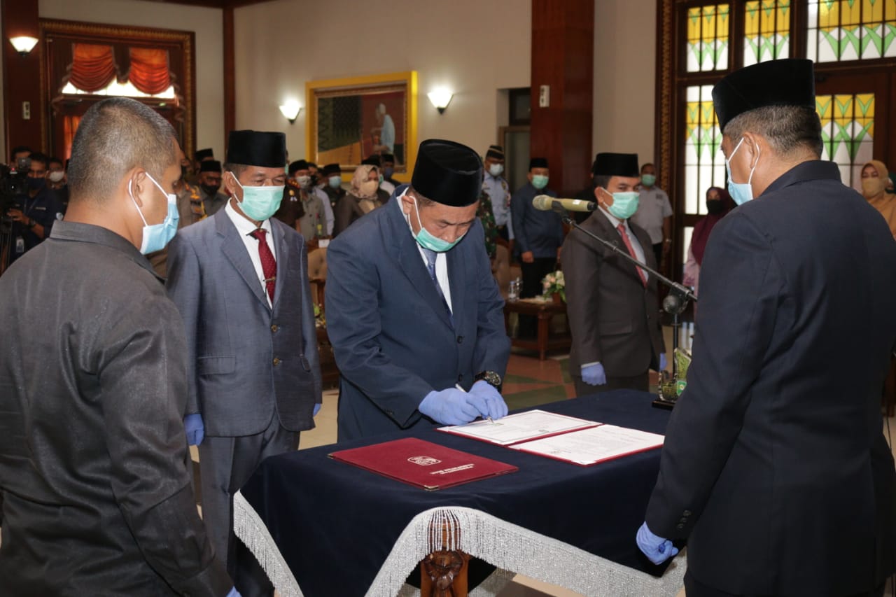 Siak, lintas10.com-Bupati Siak Alfedri melantik pejabat pimpinan tinggi pratama Sekretaris Daerah (Sekda) dan tiga Pejabat Pimpinan Tinggi Pratama dilingkungan Pemerintah kabupaten Siak. Yang berlangsung di Ruang Rapat Raja Indra Pahlawan (Lt II Kantor Bupati), Selasa, (8/9/2020) pagi.