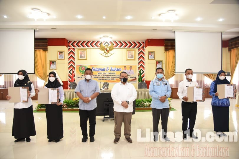 Tapanuli Selatan, lintas10.com – Bupati Tapanuli Selatan (Tapsel) H Dolly Pasaribu, SPt, MM, meminta kepada segenap jajarannya yang baru menerima Surat Keputusan Calon Pegawai Negeri Sipil (CPNS) dan Pegawai Pemerintah dengan Perjanjian Kerja (PPPK), untuk menunjukkan kinerja terbaiknya dalam mengemban tugas. Sebab, menurut Bupati, semua yang menerima SK itu adalah orang-orang terpilih.