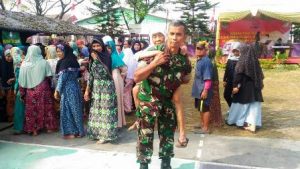 Anggota Babinsa Dengan Sigap Gendong Nenek Renta Ke Lokasi Baksos