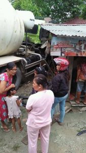 Di Pelalawan Diduga Hilang Kendali Truck Molen Hantam Warung Warga
