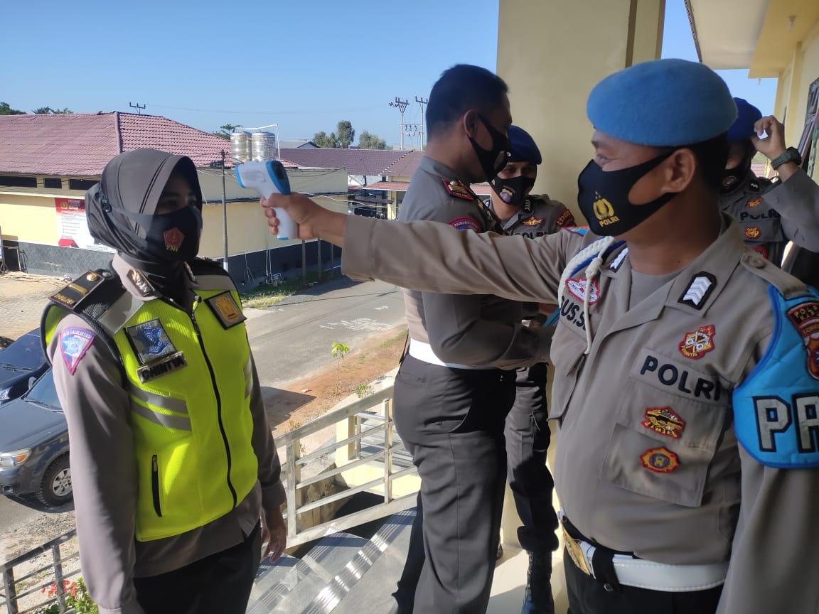 Kalimantan Tengah, lintas10.com- Polres Kapuas Sie Propam laksanakan pemeriksaan suhu tubuh dan pemberiaan cairan hand sanitizer kepada personel yang akan memasuki aula Tingang Menteng Panunjung Tarung guna mengikuti Lat Praops OMP. Rabu (26/08/2020) Pagi.