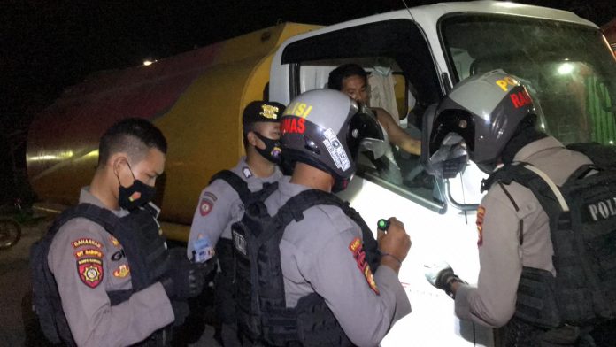 Dalam giat pemeriksaan kendaraan di jalan lintas Palangka Raya kali ini, dilakukannya pemeriksaan sejumlah kendaraan roda empat dan roda enam terhadap barang bawaan yang ada di dalam dan juga orang yang mencurigakan.