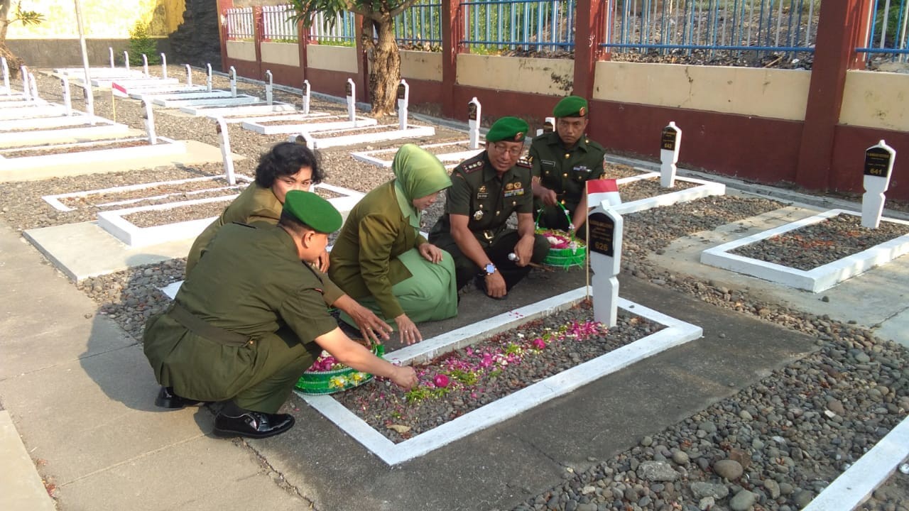 Tampak dalam ziarah, selain melaksanakan tabur bunga, Dandenkesyah Madiun juga sempat meletakkan karangan bunga di depan monumen TMP.