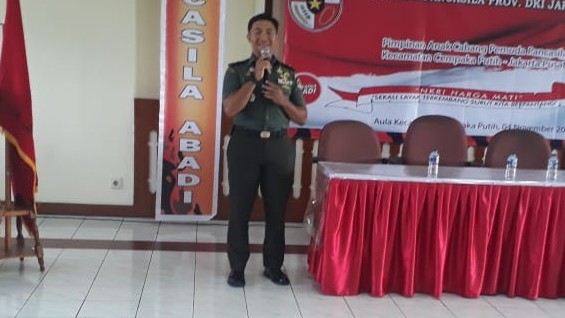 Dalam sambutannya, Danramil 06/Cempaka Putih, Kodim 0501/JP BS, Mayor Inf Yakhya Wisnu Arianto mengajak seluruh jajaran Pemuda Pancasila untuk ikut serta meningkatkan kepedulian dalam menjaga kekompakan dan keutuhan NKRI terlebih dalam tahun – tahun politik mendatang.
