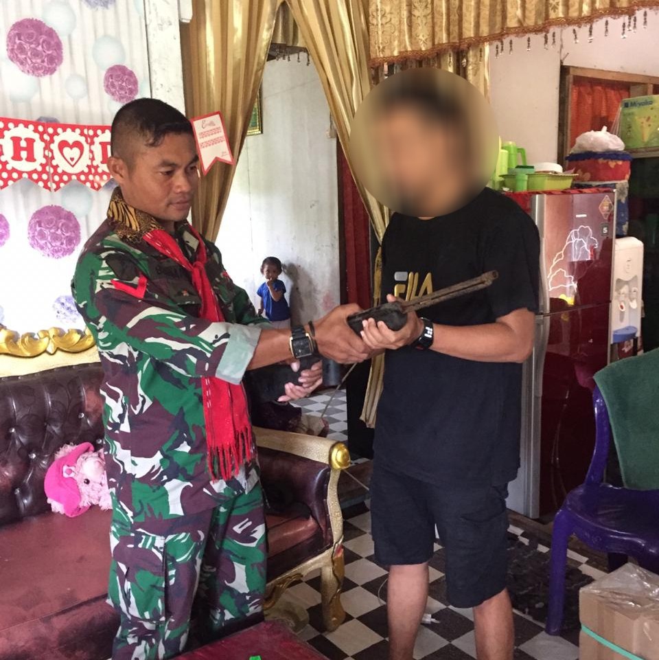 “Personel kami menindaklanjuti informasi warga dengan mendatangi rumah bapak MI, dengan komunikasi penuh kekeluargaan, bapak MI dengan sukarela menyerahkan senjata api rakitan yang disimpannya kepada personel kami, ” ungkapnya.