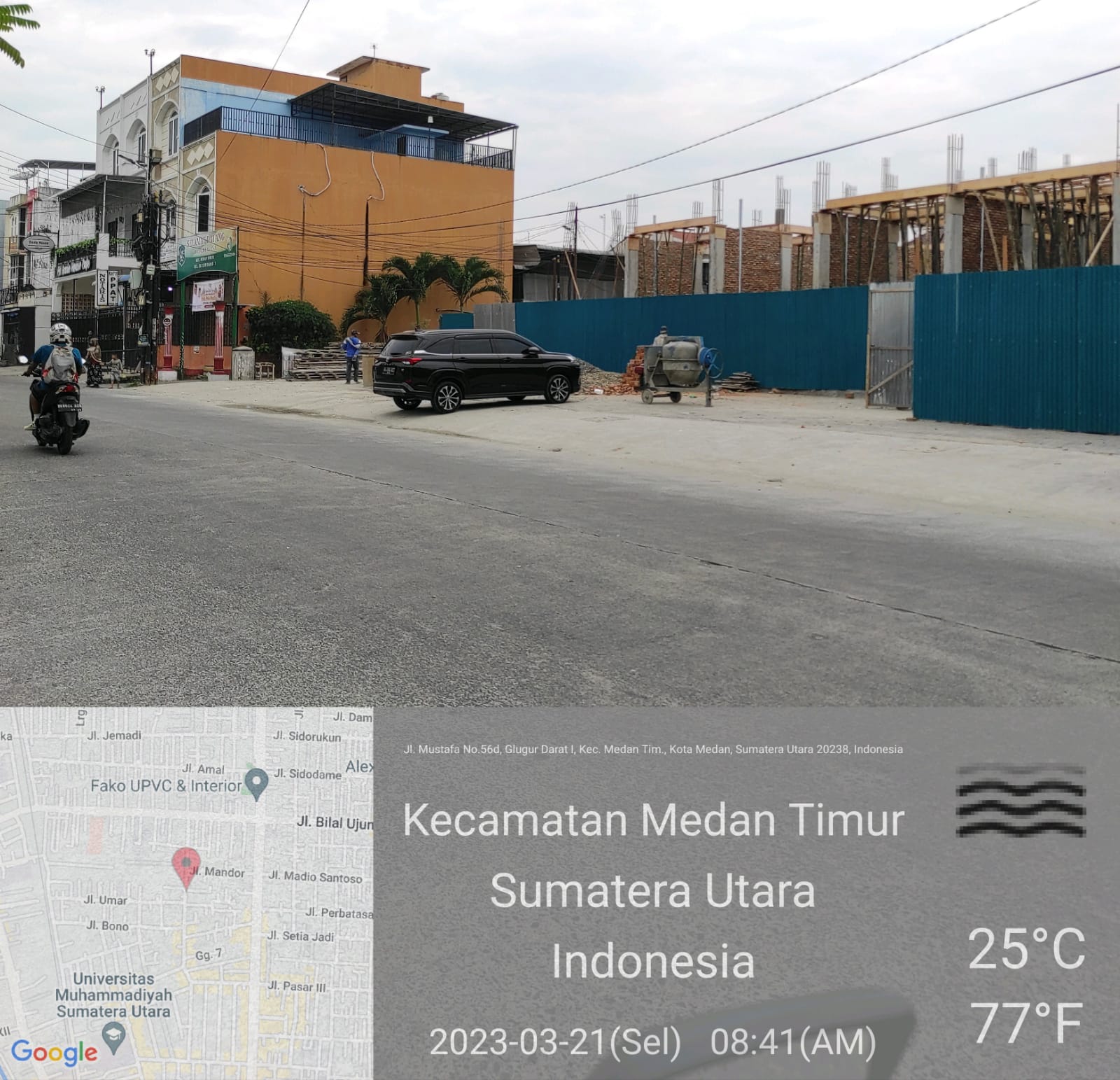 Dua lokasi bangunan di tempat yang sama (bersebrangan) di Jalan Mustafa, Kelurahan Glugur Darat I, Kecamatan Medan Timur Kota Medan diduga telah melanggar peraturan tentang izin mendirikan bangunan