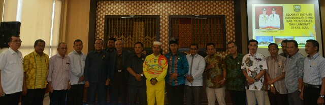 SIAK, lintas10.com- Asisten Administrasi Umum Setda Kab.Siak Drs H Jamaluddin M.Si sambut kedatangan Rombongan DPRD Kabupaten Trenggalek dan Kabupaten Langkat Sumatra Utara dalam Rangka Kunjungan kerja bertempat di Ruang Sri Indrapura Kantor Bupati Siak,Rabu(9/3/2017).