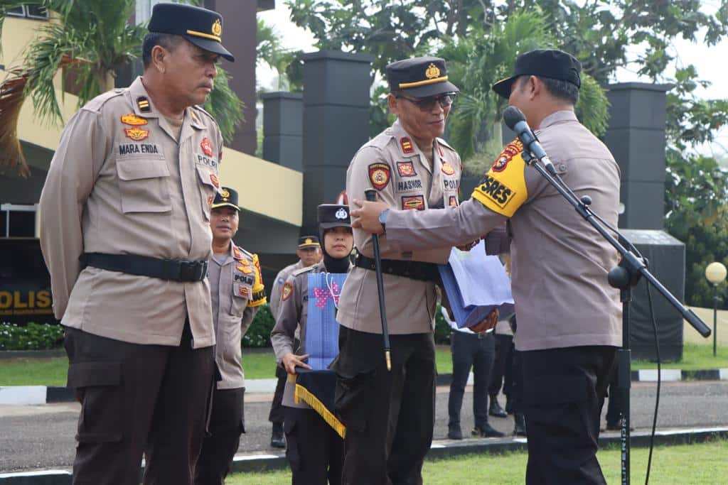 Sedangkan 2 personil Polres Kuansing yang memasuki masa Purna Bhakti yaitu Iptu Hasnor jabatan Kanit Samapta Polsek Singingi Hilir, dan Iptu Mara Enda Jabatan Kapol Sub Sektor Gunung Toar Polsek Kuantan Mudik,” katanya.