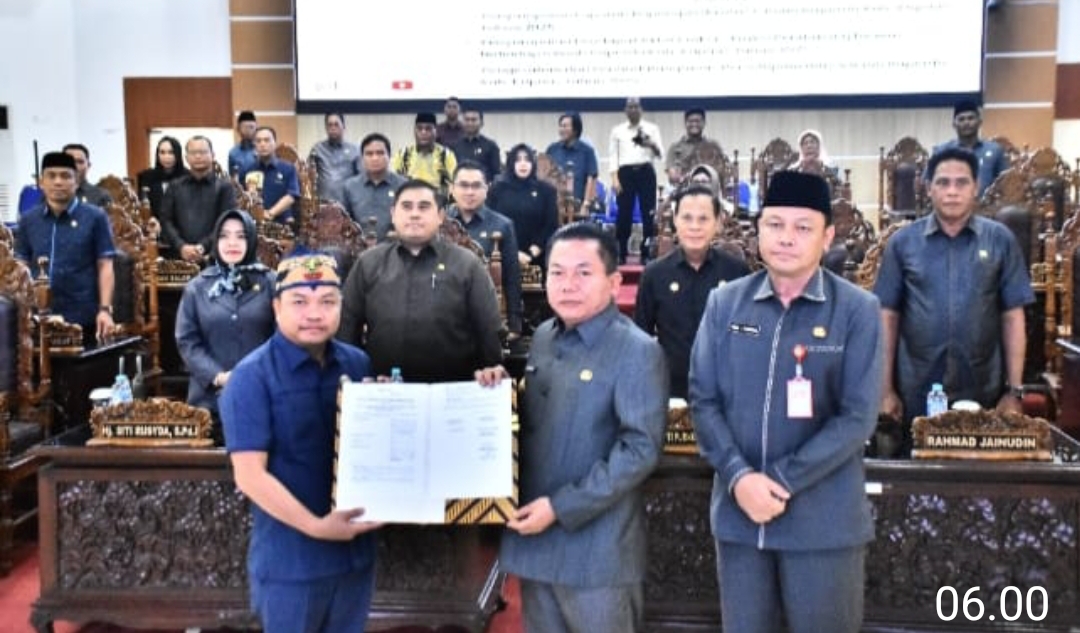 Kegiatan ini juga dirangkai dengan penandatanganan persetujuan dilakukan usai penyampaian laporan Badan pembentukan peraturan daerah ( Bapemperda), pendapat fraksi-fraksi, serta laporan panitia khusus (pansus) I, II, dan III. (Adnan)