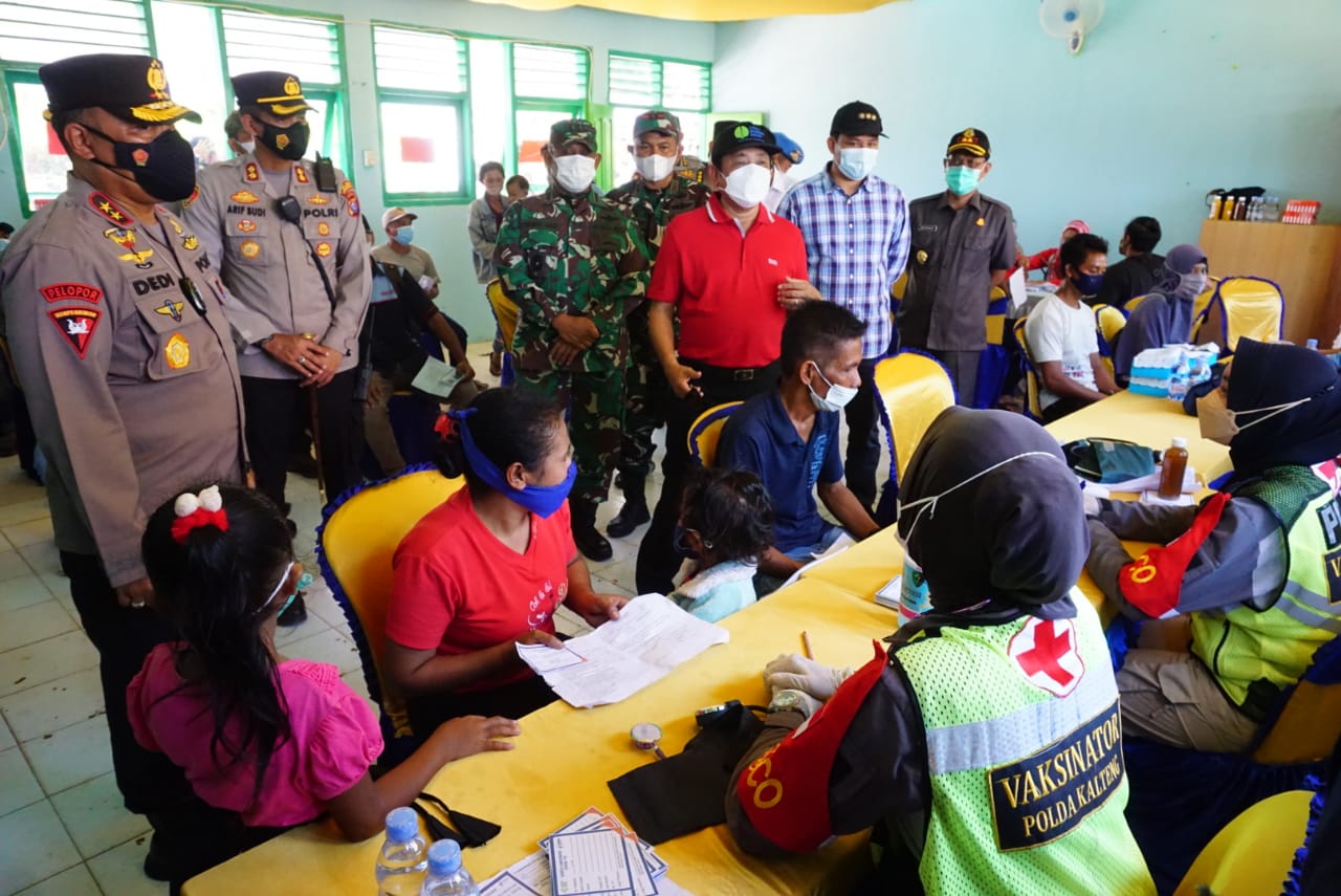 Kepala Kepolisian Daerah Kalimantan Tengah Irjen Pol Dr. Dedi Prasetyo, M.Hum, M.Si., M.M., bersama sejumlah pejabat utama Polda Kalteng didampingi Kapolres Lamandau AKBP Arif Budi Purnomo, S.I.K., M.H., serta Forkopimda Kabupaten Lamandau meninjau vaksinasi Covid-19 kepada Karyawan PT. Citra Borneo Indah (CBI Group) Kab. Lamandau, Minggu (31/10/2021) siang.