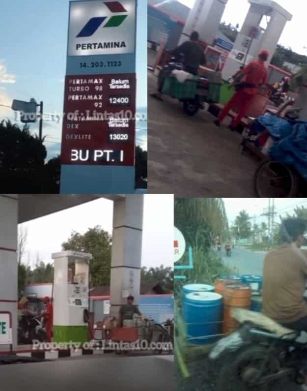 Dilokasi, BBM bersubsidi itu bebas dilangsir menggunakan wadah bekas kaleng cat bertutup terpal untuk menyamarkan praktik penimbunan BBM tersebut. Tampak puluhan becak dengan muatan belasan jerigen/kaleng cat mengantri di SPBU ini. Tidak hanya itu, mobil modifikasi berjejer mengantri pada malam hari untuk mendapatkan bahan bakar jenis pertalite maupun jenis solar yang disubsidi pemerintah itu.