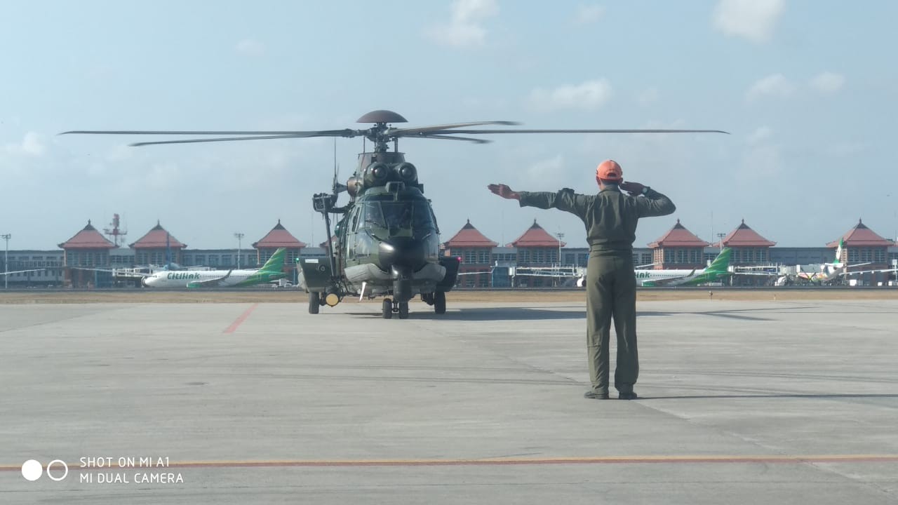 Bali, Lintas10.com – Helikopter Super Puma Caracal 1 Reg HT-7203 melaksanakan cek spot untuk rute bandara internasional I Gusti Ngurah Rai-Garuda Wisnu Kencana-Lapangan Pecatu-Peninsula dalam rangka melaksanakan pengamanan Pertemuan Tahunan Dana Moneter Internasional dan Bank Dunia tahun 2018 di Denpasar, Bali, Minggu (7/10/2018).