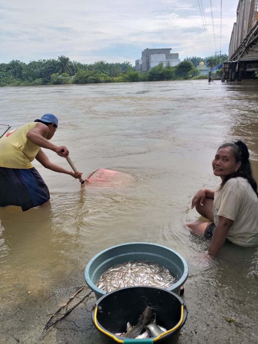 Saat banjir malam saya bersama suami keluar rumah sekitar jam 19.30 WIB mendurung ikan dundung dipinggiran sungai Labuhan.