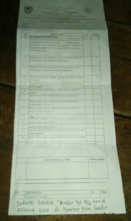 Dari pantauan Lintas10.com, dimana Pemerintah Daerah Kabupaten Seruyan, kususnya pada Instansi instansi terkaitnya, yakni berupa pemberitahuan ataupun himbauan tentang perihal apa yang sedang terjadi dan penjelasan tentang langkah dari gimanakah sebaiknya yang dilakukan terkait dengan hal tersebut. Memang untuk diketahuinya sampai pada dengan sekarang ini, tidak ada ditemui bahwa adanya pemberitahuan ataupun himbauan, tentang perihal dari imunisasi vaksin tersebut, baik dari unsur pemerintah daerah kabupaten seruyan, melalui instansi terkaitnya, maupun organisi agamanya, yakni seperti MUI kabupaten seruyan. Namun yang ada ditemukan seperti dari Pemerintah Daerah Kabupaten Seruyan, Dinas Kesehatan, UPTD Puskesmas Kuala Pembuang satu, Kecamatan Seruyan Hilir, tentang pada selebaran Skrining Imunisasi Meales Rubella (MR)  dan tulisan tangan yang tertera pada jadwal suntik yang diberitahukan kepada orang tua siswa dengan pada diharapkan untuk hadir.