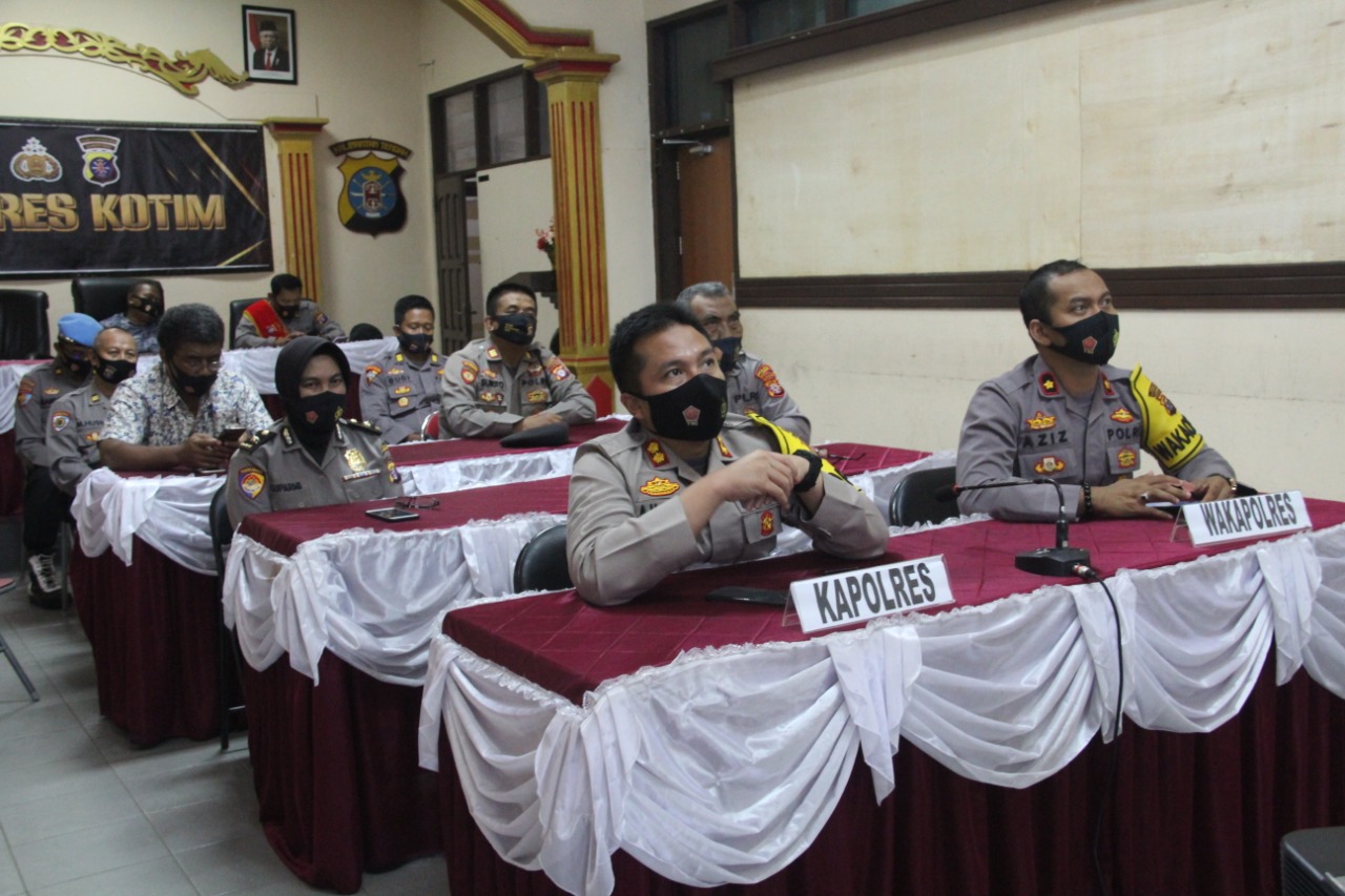 Kalimantan Tengah, lintas10.com–Polres Kotim-Menjelang pelaksanaan Pemilihan Kepala Daerah (Pilkada) Gubernur Kalteng dan Bupati Kotawaringin Timur, Pejabat Utama Polres Kotim dan perwira staf mengkikuti Tausiyah Kebangsaan yang diadakan Polda Kalteng secara Virtual, bertempat di Aula Mapolres Kotim Jl. Jend. Soedirman Km. 0 Sampit Kab. Kotim Prov. Kalimantan Tengah. (21/08/2020)