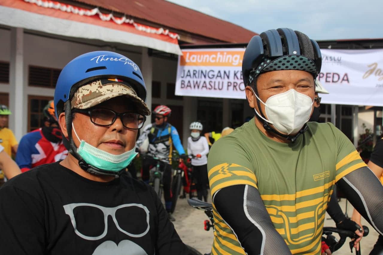 Menyinggung soal sepeda, Kapolda Riau mengajak Ketua Bawaslu Provinsi Riau Rusidi Rusdan untuk gowes bersama-sama dengan jajaran kepolisian dan komunitas sepeda lainnya.