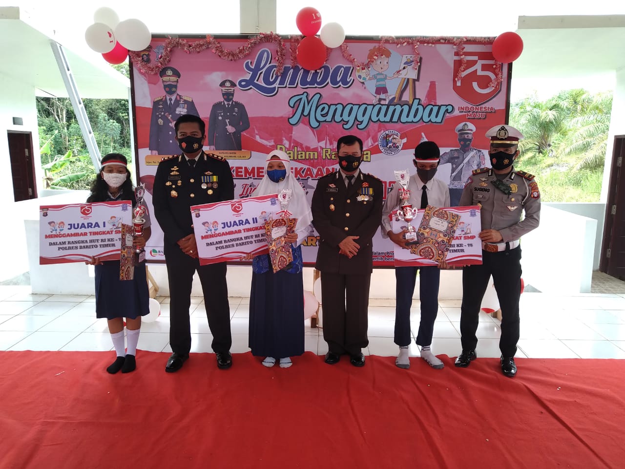 Kapolres Bartim Serahkan Langsung Piala Dan Piagam Ke Para Pemenang Lomba Menggambar