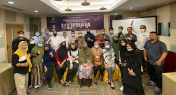 Acara yang di taja Serikat perusahaan Pers (SPS) cabang Riau bekerjasama dengan pemerintah Provinsi Riau bertema”Strategi mengelola humas di era disrupsi media” yang berlangsung di Hotel Pangeran, Jum’at (18/11/2021).