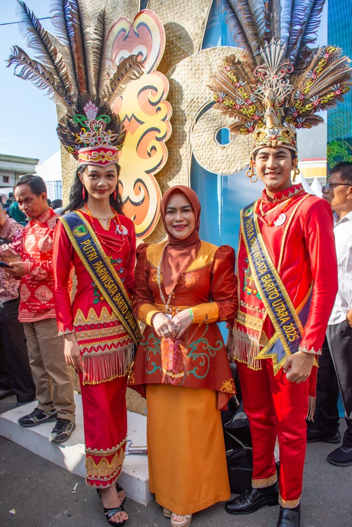 BALIKPAPAN, lintas10.com- Ketua Tim Penggerak PKK Kabupaten Kapuas sekaligus Ketua Dekranasda Kapuas, Siti Saniah Wiyatno, menghadiri Perayaan Hari Ulang Tahun ke-45 Dewan Kerajinan Nasional (Dekranas) yang digelar di Halaman Balikpapan Sport and Convention Center (BSCC) Dome, Kalimantan Timur, Rabu (09/07/2025). Acara yang berlangsung meriah ini diikuti oleh 3.769 peserta dari 37 provinsi, serta menampilkan ratusan stan kerajinan dan kuliner khas nusantara.