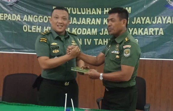 Jakarta, Lintas10.com – Tim penyuluh hukum dari Kumdam Jaya Letkol Chk Abdul Salam SH memberikan penyuluhan hukum kepada prajurit jajaran Kodim 0503/JB yang digelar di Aula Makodim 0503/JB, Jalan Letjen S Parman, Tomang, Grogol Petamburan, Jakarta Barat, Senin (5/11/2018).