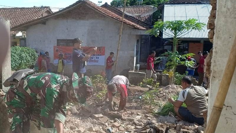 “Saat ini, personel Koramil Bumiayu yang dipimpin Serma Bambang, bergotong royong bersama warga membangun rumah,” tambahnya.