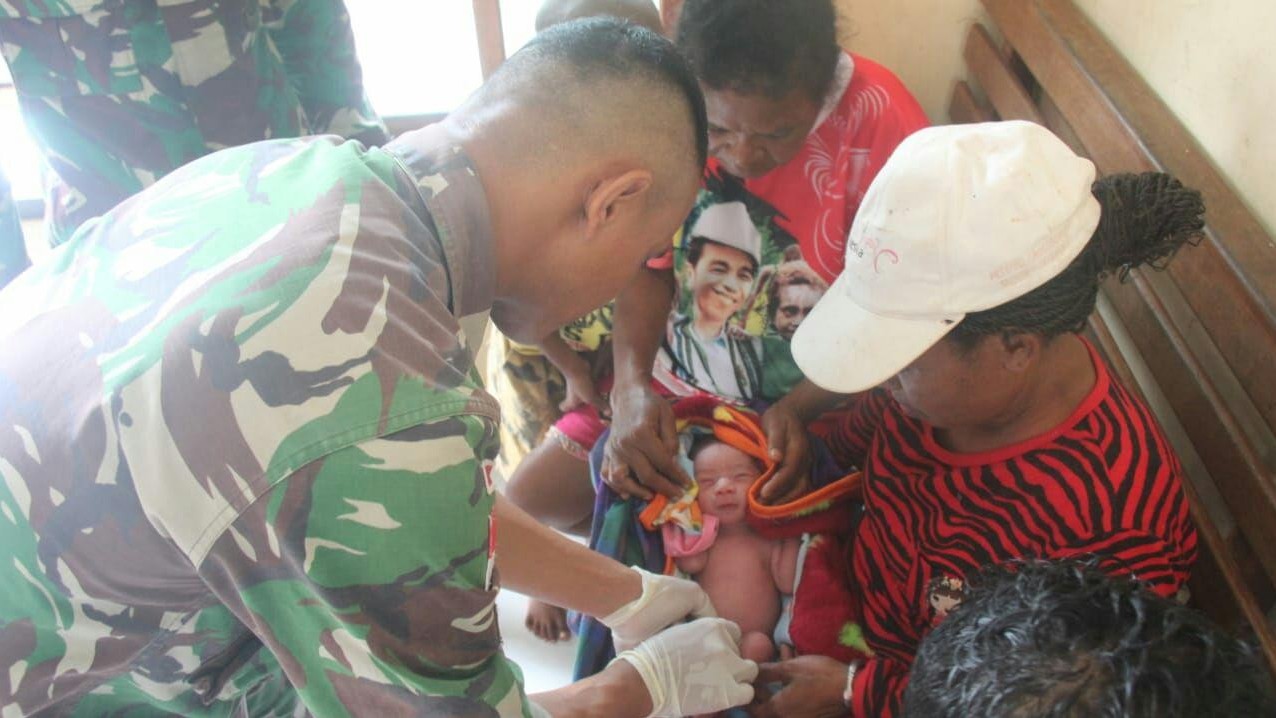 “Dengan sigap tim kesehatan Pos Kotis, Pratu Feriyanto segera menuju ke rumah Bapak Demet Awom untuk membantu proses persalinan Ibu Mei. Dan saat sampai di rumahnya, posisi bayi kepalanya sudah keluar,” jelasnya.