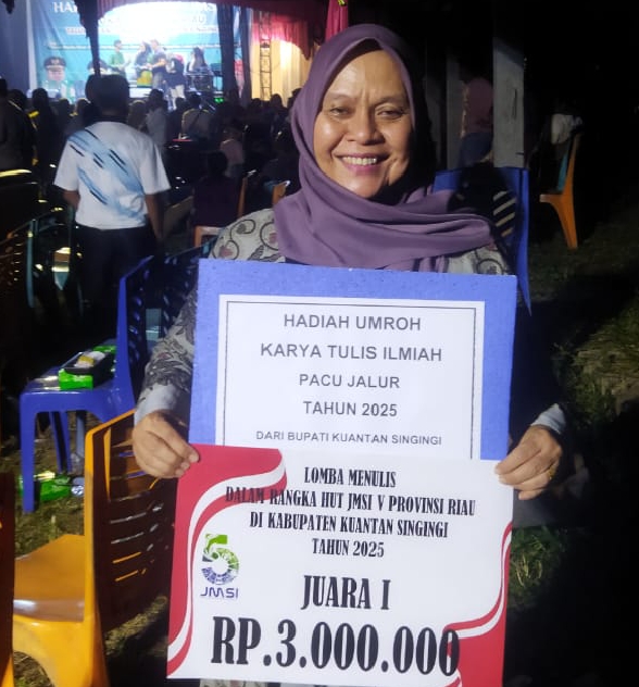 Luzi Diamanda dari media online berkabarnews.com berhasil meraih juara 1, mendapatkan hadiah uang tunai Rp3 juta dan tiket umroh gratis dari Bupati Kuansing.