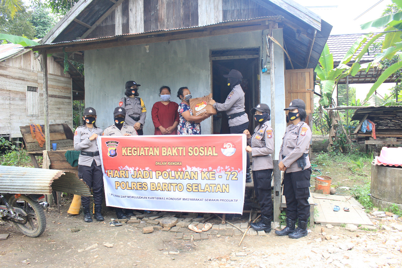 Begitu pula yang dilakukan oleh personel Polisi Wanita atau Polwan Polres Barsel yang dipimpin Aipda Iin Suprihatin dalam menyambut Hari Ulang Tahun (HUT) Polwan ke-72 menggelar aksi bhakti sosial dengan membagikan Sembako ke masyarakat pra sejahtera terdampak Covid-19 yang ada di Kota Buntok, Selasa (4/8/2020) pagi.