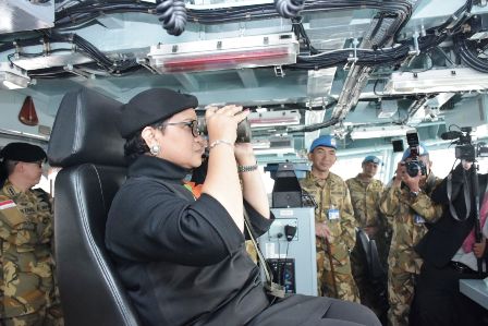 Menlu RI melanjutkan acara ke lounge room untuk menerima paparan singkat dari Komandan Satgas MTF TNI XXVIII-J/Unifil dan melaksanakan foto bersama prajurit Satgas di haluan.