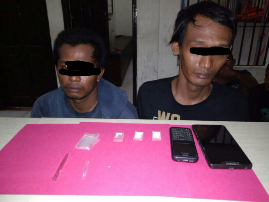 Kemudian Pengeledahan dilanjutkan dilantai tempat kedua pelaku duduk dan ditemukan juga disaku celana .SU 2(paket)yang diduga narkotika jenis sabu, 4 (empat) buah plastik bening, 1 (satu) buah sendok dari pipet plastik, 1 (satu) buah hp merk nokia warna hitam, 1 (satu) buah hp merk lenopo, 1 (satu) buah kaca pirek.katanya lagi
